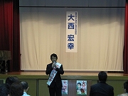 大西宏幸さんの個人演説会がありました。演説会の始まる10分前は人が数人しか入っておらず
